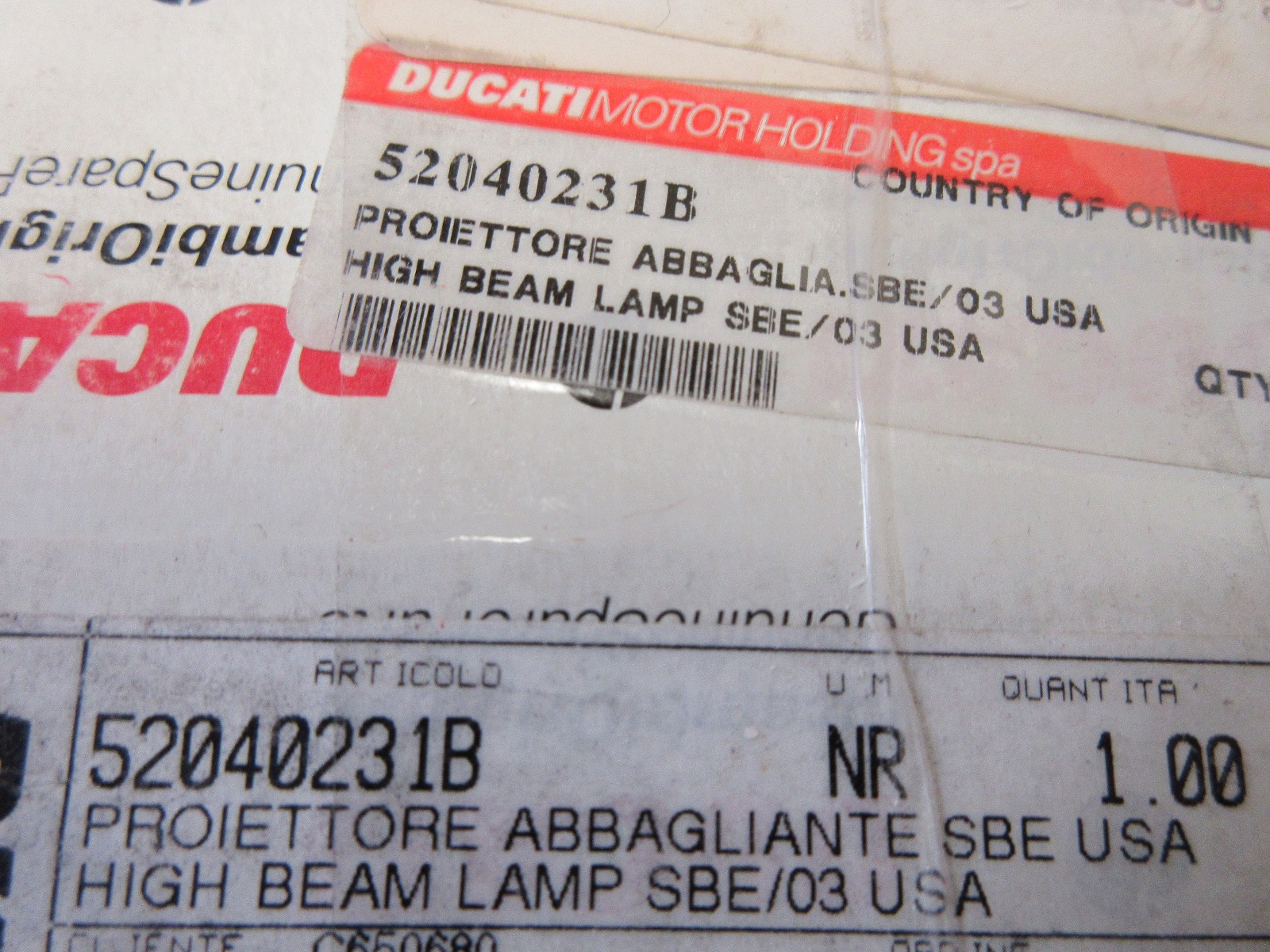 Ducati 749 749S 749R 999 999S 999R high beam 52040231B headlight USA