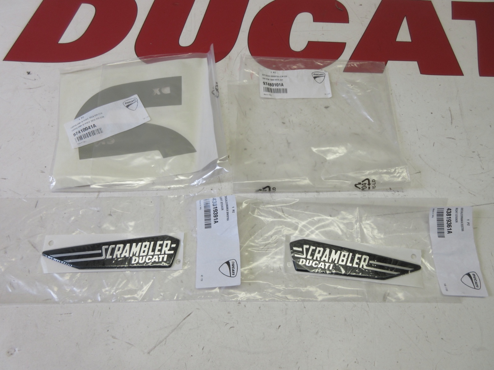 Ducati 97480101A Performance SCRAMBLER Original fuel tank decal set left & right