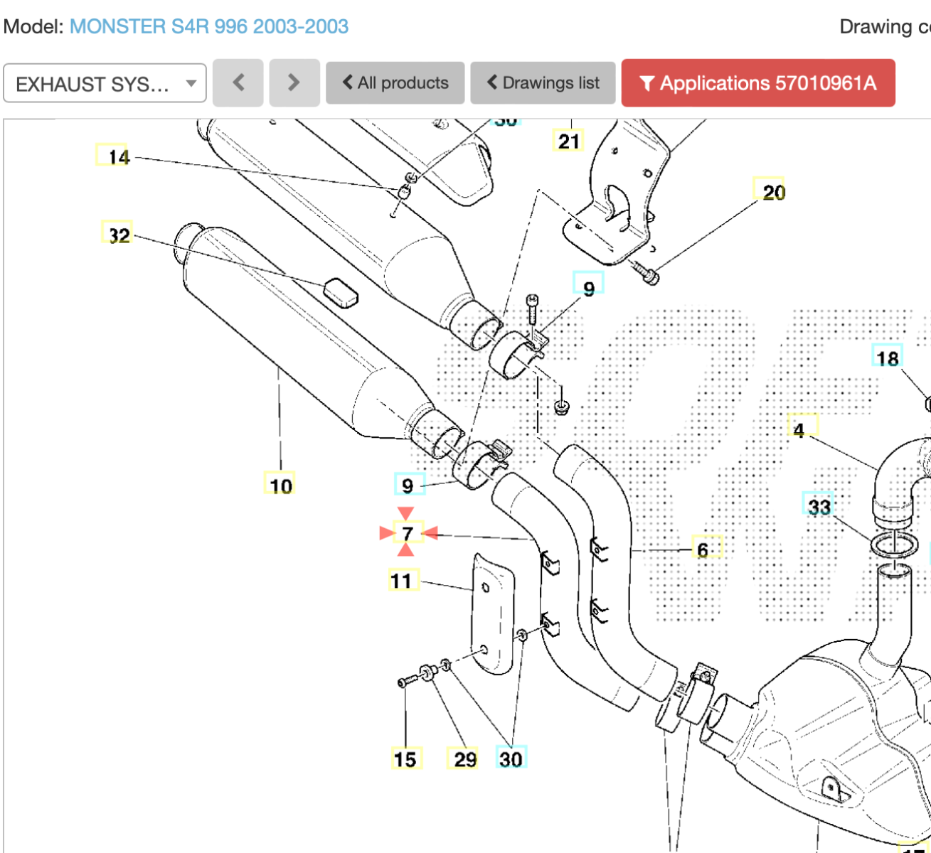 Ducati Monster S2R 800 1000 S4R 996 Horizontal lower exhaust manifold 57010961A