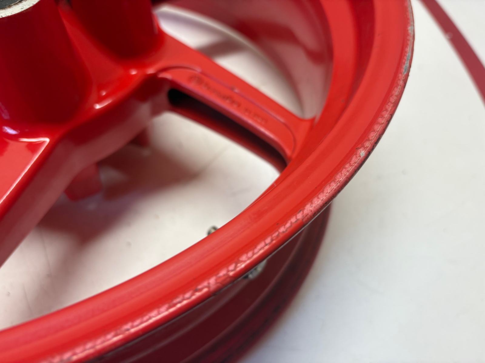 Shows some paint imperfections, due to tyre change